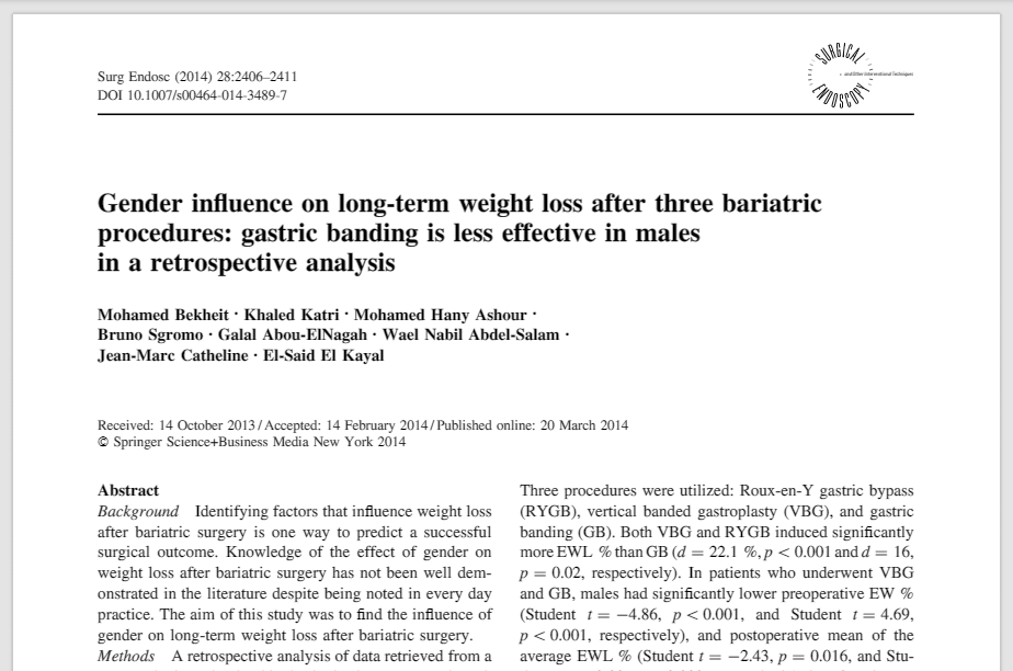 Gender influence on long-term weight loss after three bariatric procedures gastric banding is less effective in males in a retrospective analysis