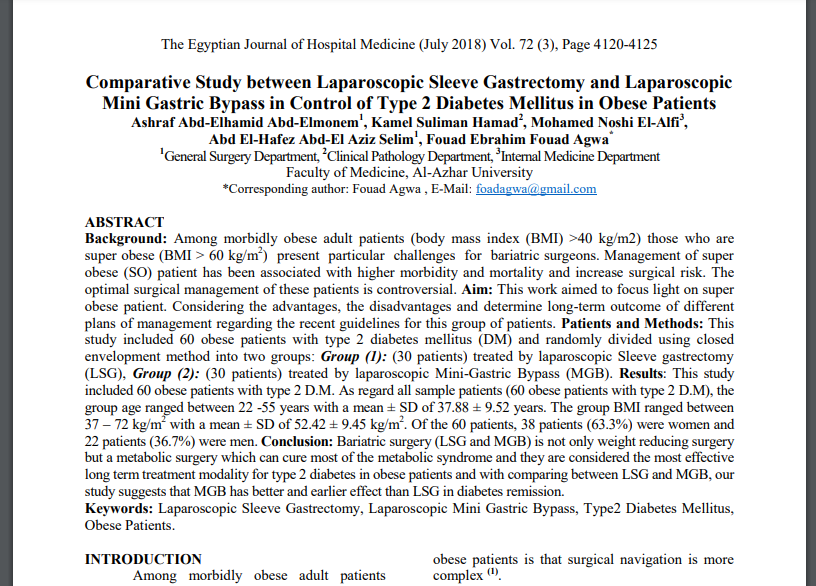 COMPARATIVE STUDY BETWEEN LAPAROSCOPIC SLEEVE GASTRECTOMY AND LAPAROSCOPIC MINI GASTRIC BYPASS FOR TREATMENT OF MORBID OBESITY