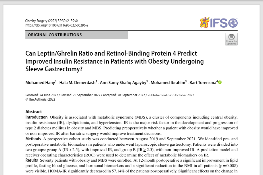 Can Leptin/Ghrelin Ratio and Retinol-Binding Protein 4 Predict Improved Insulin Resistance in Patients with Obesity Undergoing Sleeve Gastrectomy?