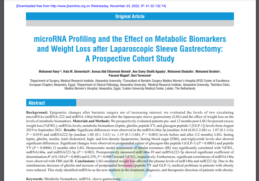MicroRNA profiling and the effect on metabolic biomarkers and weight loss after laparoscopic sleeve gastrectomy: A prospective cohort study