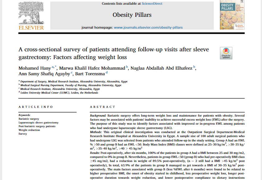 A cross-sectional survey of patients attending follow-up visits after sleeve gastrectomy: Factors affecting weight loss