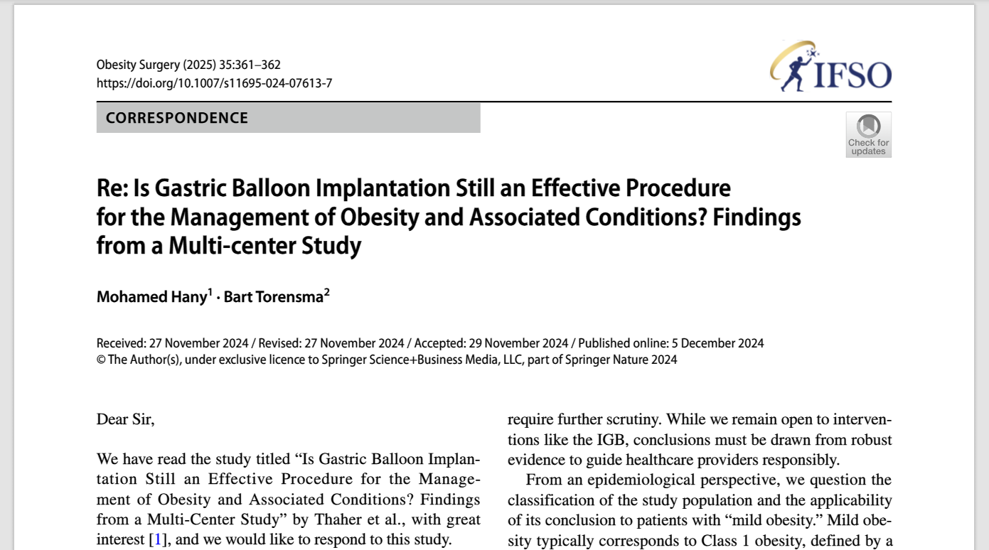 Re: Is Gastric Balloon Implantation Still an Effective Procedure for the Management of Obesity and Associated Conditions? Findings from a Multi‑center Study